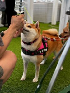 暑いので水分補給をするマモ子