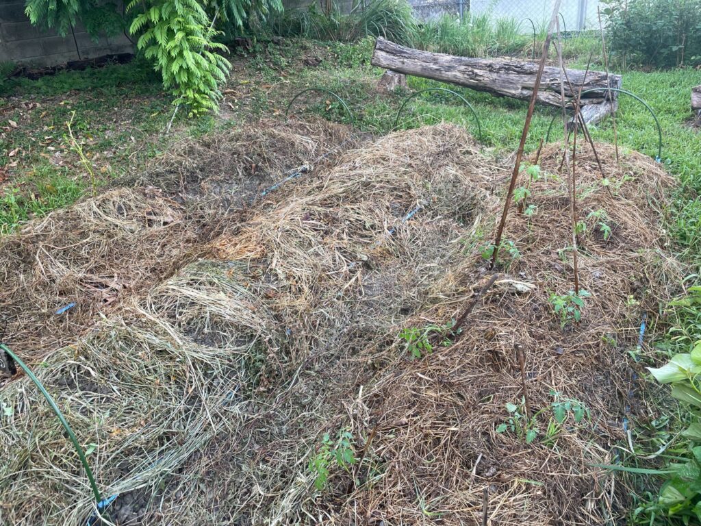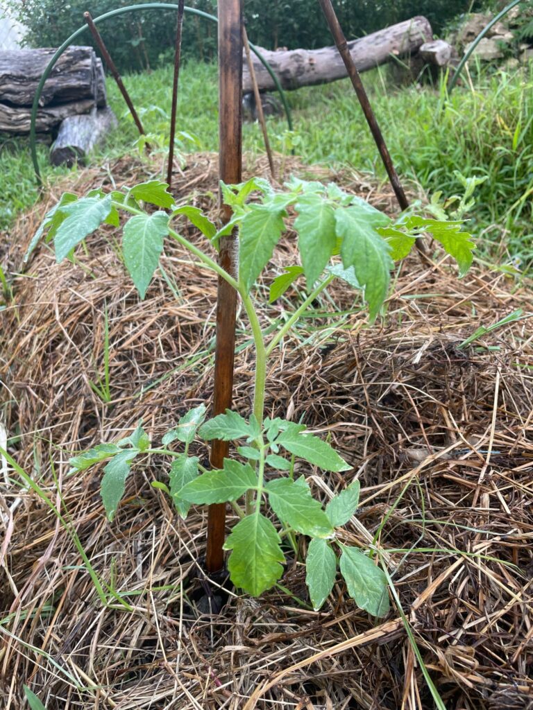 今回は3つの畝のうち、1つをトマトとニラ、1つを人参と大根、1つをピーマンという感じに分けて植えました。