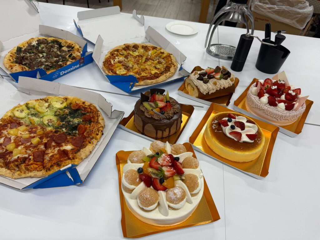 今回は業後に、ピザ&ケーキ&コーヒーパーティーを実施しました。