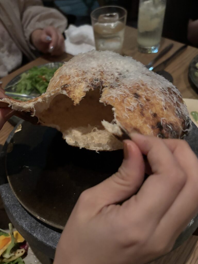 焼き立てを割ると中は空洞になっていて、ふわっと湯気が立ちのぼる様子が面白くて、