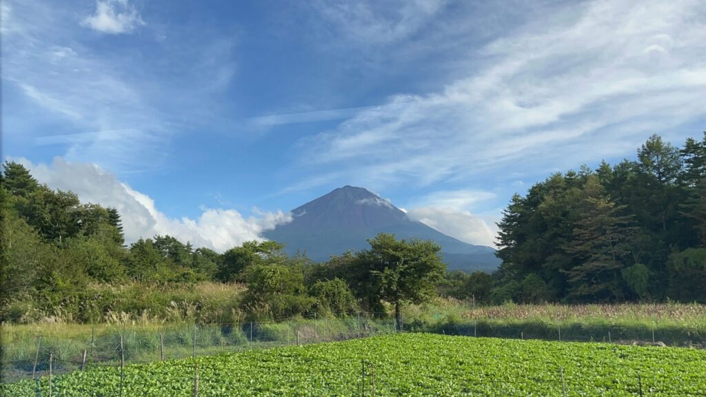 帰る直前に急に晴れてきて富士山の姿を見ることができ、良い旅の締めくくりとなりました。