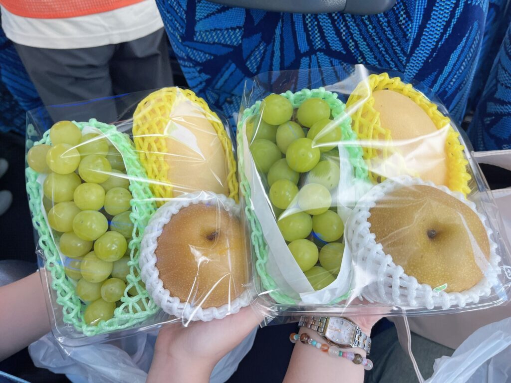 さらにフルーツのお土産も沢山いただいて、旅の始まりからテンションが上がります!